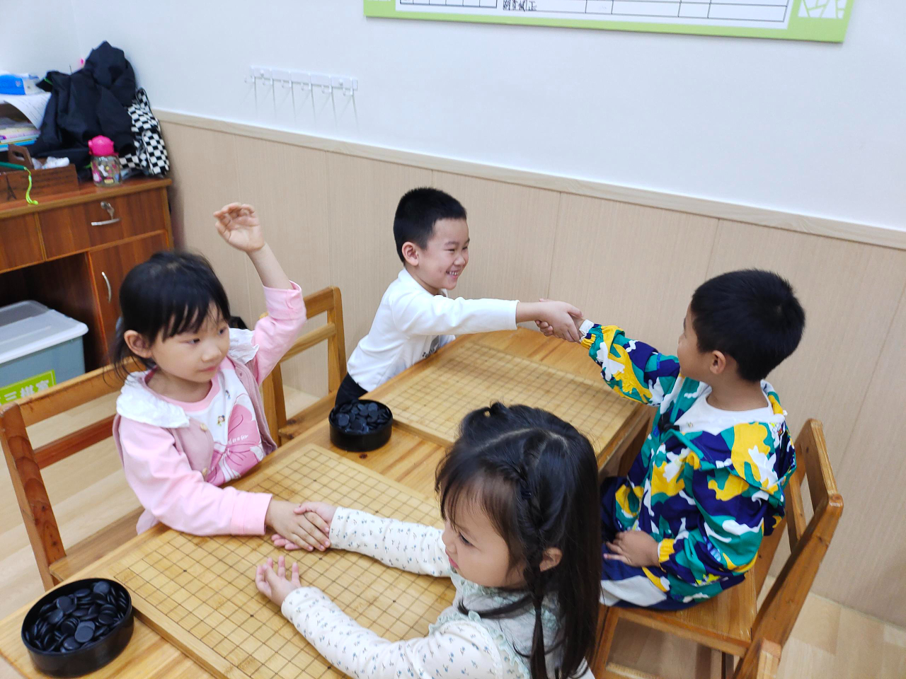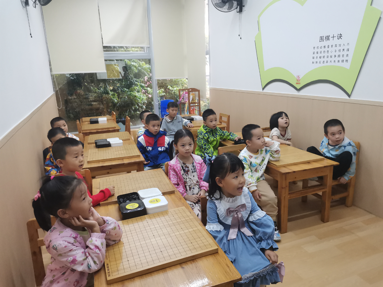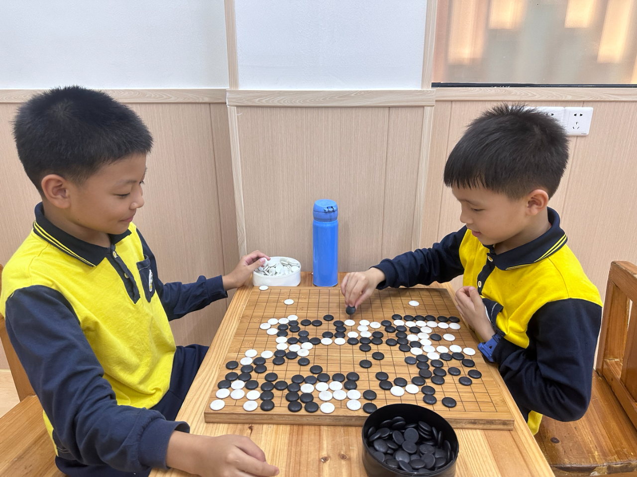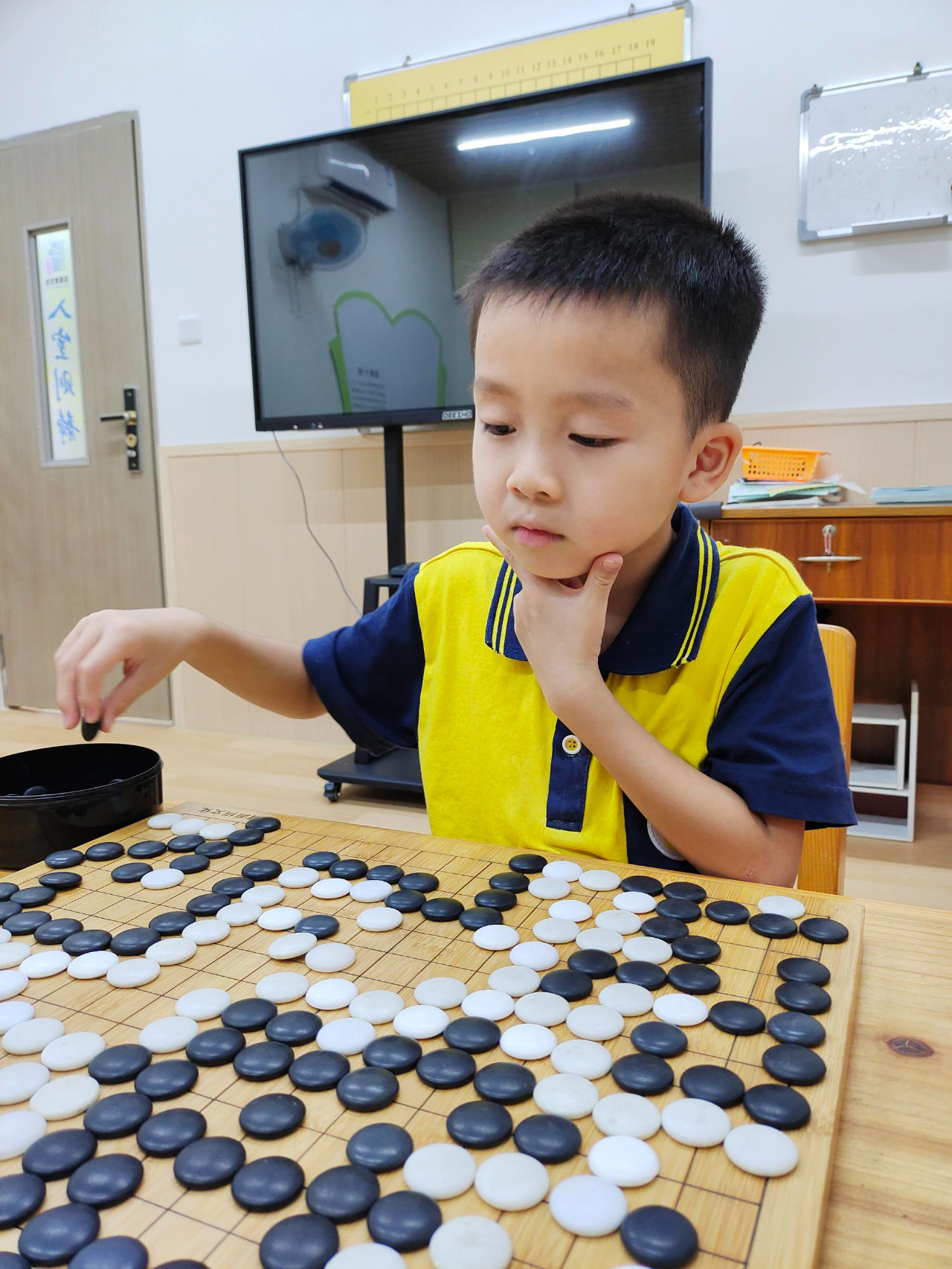 對弈前的坐姿端正,對弈中的聚精會神,這模樣足以表達孩子們對圍棋的熱愛。