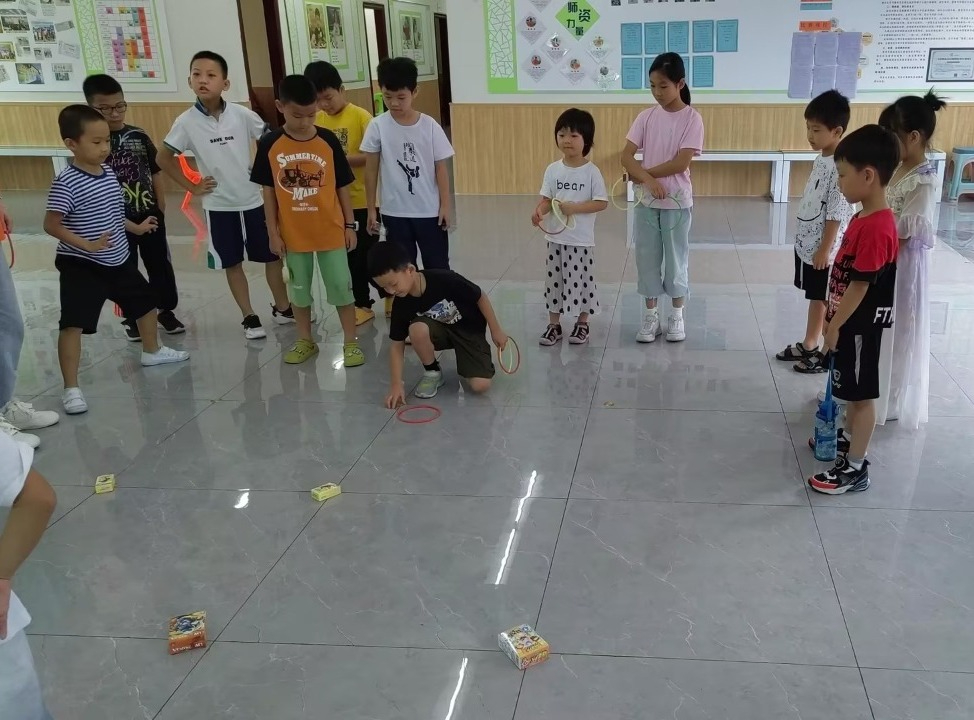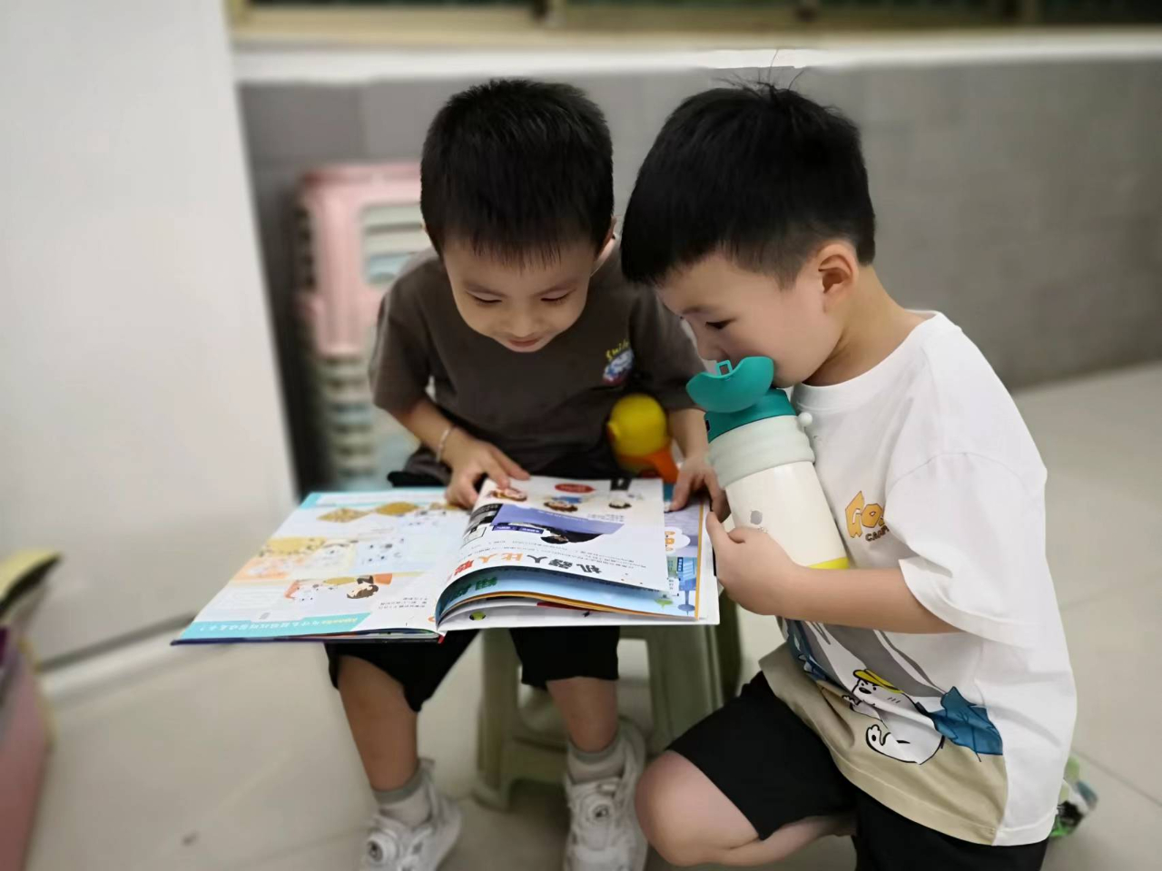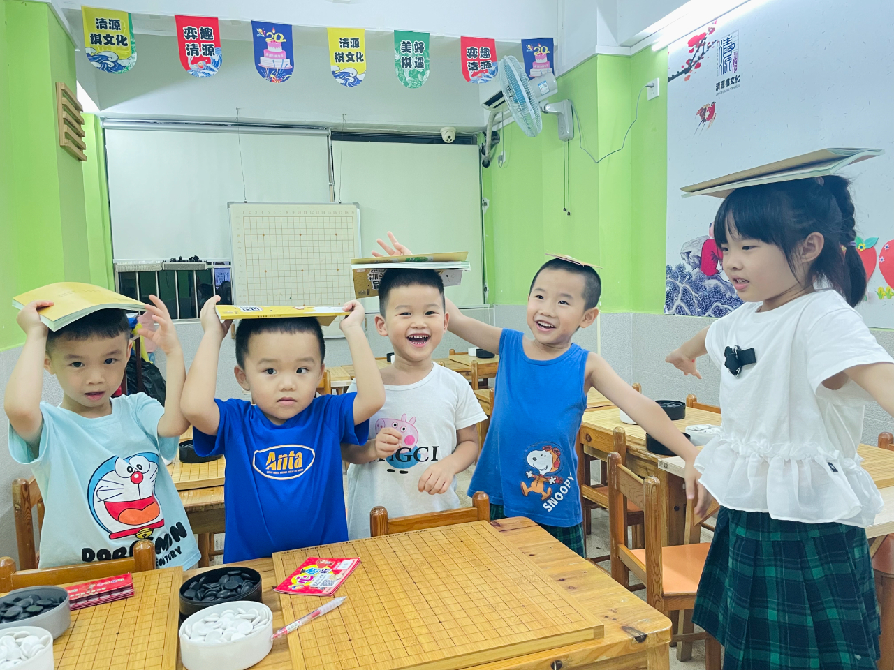 課間圍棋玩頭頂轉(zhuǎn)書游戲,可以鍛煉棋寶的平衡能力哦~